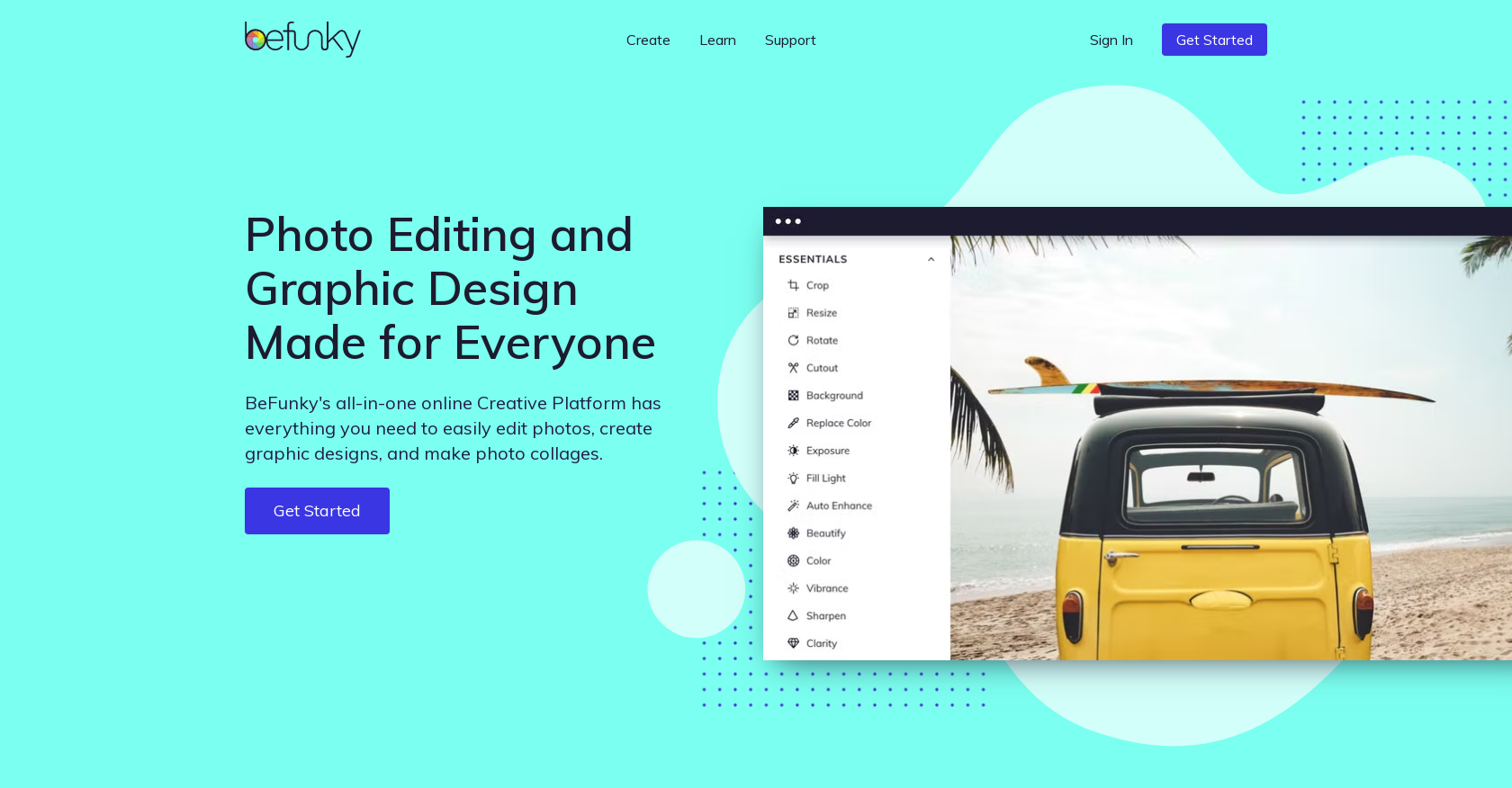 BeFunky Photo Editor lets you apply photo effects, edit photos and create photo collages with collage maker. It has features like cropping, resizing, batch editing, background removal, retouch portraits, one click collage maker, several design templates, millions of stock images
