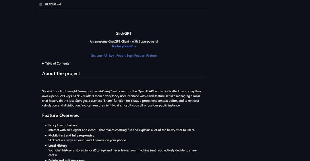 SlickGPT is a light-weight "use-your-own-API-key" web client for the OpenAI API written in Svelte