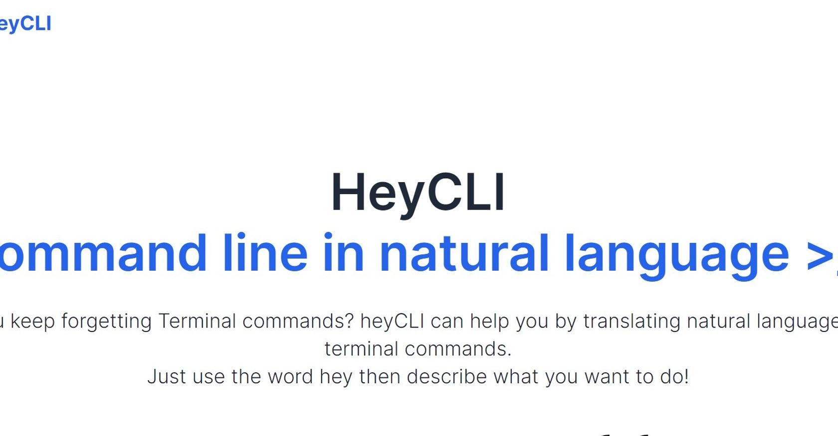 heyCLI can help you by translating natural language to terminal commands.