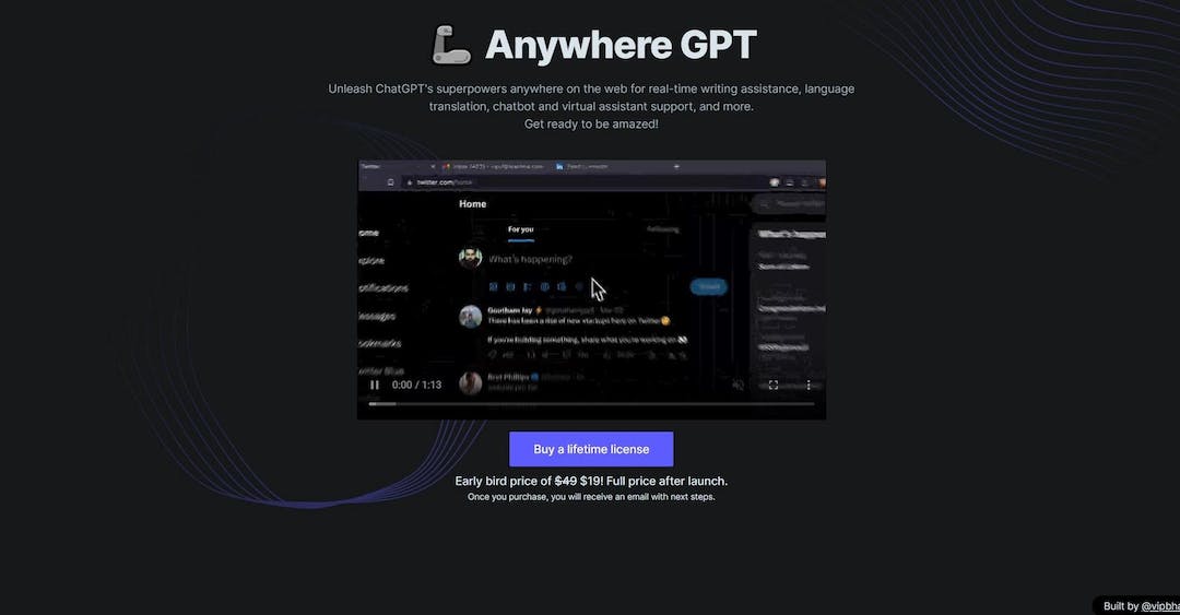 Writing, translation, virtual assistant. Anywhere GPT is a versatile AI tool developed by @vipbhavs that offers real-time writing assistance, language translation, chatbot creation, and virtual assistant support. It can be integrated and utilized on any webpage, providing users with access to