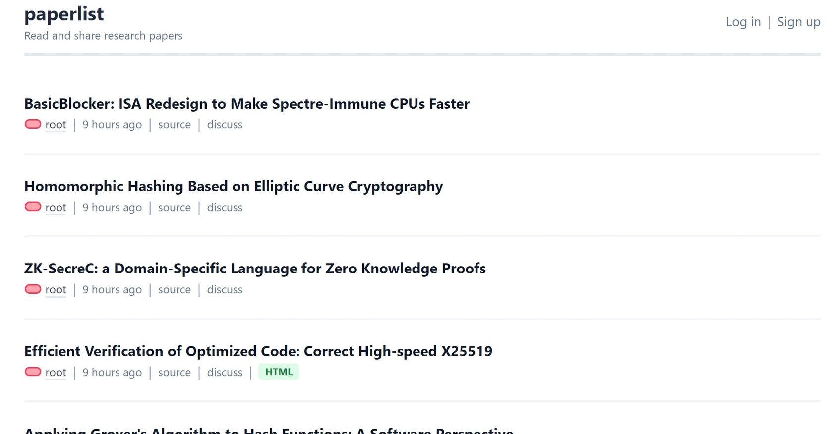 This website is about sharing and reading research papers. It has a log in and sign up page and also multiple research papers listed on the website. Each paper is accompanied by the name of the author, the time it