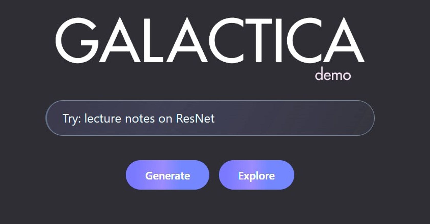 Galactica is an AI trained on humanity's scientific knowledge. You can use it as a new interface to access and manipulate what we know about the universe. https://youtu.be/2GfxkCWWzLU